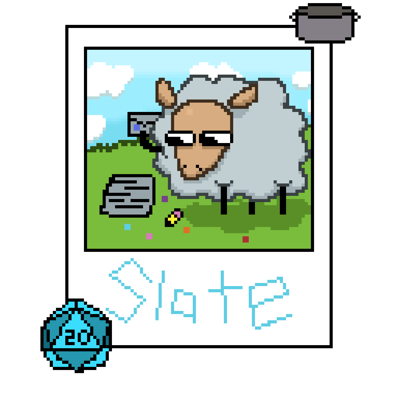 ![]() | This is Slate, Visible Schmo's Design Manager and CEO. His favorite color is light sky blue and his favorite animal is a sheep. Sometimes he feels like he is a real sheep and goes out to graze the land. Slate enjoys collecting expensive dice and going on nature walks to take photos on his very old film camera. He's spent way too much money on flash bulbs for it. | |